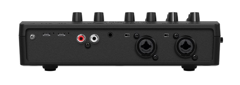 - Два входа XLR, стереовход 3,5 мм, а также выходы на наушники и монитор.