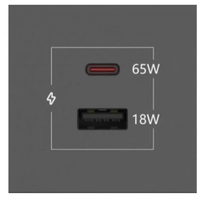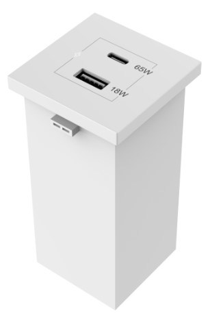 Kramer MC-C65W/A18W(B) - модульная розетка для зарядки персональных устройств с двумя разъемами: USB-C и USB-A, предназначенная для использования в составе встраиваемых модулей cерии T-In.