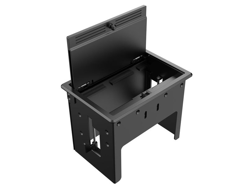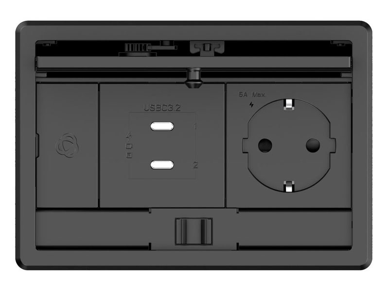 Kramer T-IN2-REC2(B) - встраиваемый в поверхность мебели для конференц-залов (стола, кафедры, трибуны и т.д.) прямоугольный модуль с крышкой, предназначенный для кабельных подключений ноутбуков или иных персональных устройств участников. Модуль легко устанавливается с верхней стороны рабочей поверхности сквозь заранее подготовленное отверстие и фиксируется снизу посредством прижимных струбцин. При помощи рамки и двух модульных вставок с разъёмами формируется необходимая конфигурация. Вставки легко и быстро устанавливаются и фиксируются при помощи специального интегрированного запирающего устройства. Благодаря тонкой выступающей части, элегантному дизайну и двум доступным вариантам цвета встраиваемые модули T-In идеально интегрируются в рабочую поверхность, способствуя аккуратному виду рабочего места и не нарушая функциональность офисной мебели.