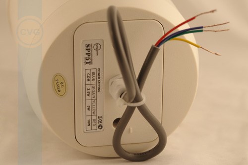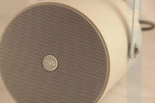 CVGaudio SPP5T имеет влаго и пылезащитный корпус (IP55) и благодаря этому, данная модель звуковой колонны может быть установлена на открытом воздухе. Герметичный корпус выполнен из ABS пластика стойкого к воздействию влаги, солнечного света и пыли. Корпуса акустической системы выпускаются только в белом цвете. Диффузор громкоговорителя закрыт защитной алюминиевой сеткой и прозрачным для звука плотным синтетическим материалом (специальный паролон), который не позволяет каплям влаги попадать на установленный внутри корпуса громкоговоритель. Декоративная алюмиениевая сетка покрашена в цвет корпуса звуковой колонны. В звуковом прожекторе используется громкоговоритель диаметром 5,25”(133.35mm) изготовленный из поолипроопилена высокой плотности. Внутри корпуса звукового прожектора установлен качественный согласующий 100V трансформатор, который позволяет подключить данную модель в 100V режиме на одну из трех доступных мощностей – 2,5W, 5W и 10W. CVGaudio SSP5T имеет выходящий из корпуса акустической системы четырехжильный кабель для подключения к спикерной линии.