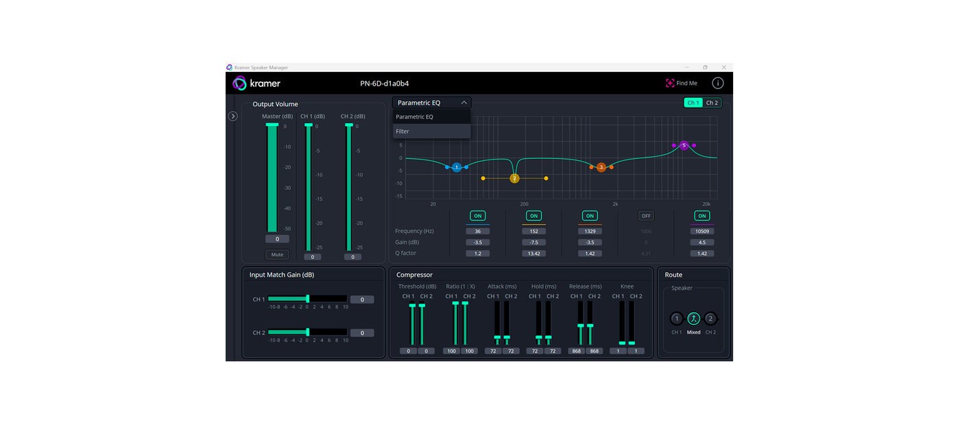 Вышеуказанные функции легко настраиваются с помощью интуитивно понятного программного приложения Kramer Speaker Manager.